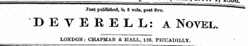, ; . L . ~ ' * - - » »_•» , _^ j -KJtlQ Just published , ia 3 vols . post 8 vo . D E V E R ELL : a Novel . LONDON : CHAPMAN & HALL , 193 , PICCADILLY .