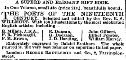 A SUPUItB AND ELEGANT GIFT BOOK . In Ono Volume , small _ to ( prico 21 s . ) , beautifully bound , THE POETS OP THE NINETEENTH CENTURY . Selected and cditod by tho Rev . R , A . WILLMOTT . With 100 Illustrations by tho most colobrated English artists ; including—E . Millais , A . R . A ., I E . Duncan , I John Gilbert , P . R . Pickoi'SRill , G . Dodgson , Birkot Forstor , F . M . Brown , 1 J . D . Harding , J William Harvoy . Elaborately engraved by Dalzicl Brothers . Tho whole printed in tho very best manner on superfine tinted paper , London : GisoitdK RouTi , K » aK and Co ., 2 , Farringdonstreet .