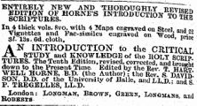 ENTIRELY NEW AND THOROUGHLY ~^ RVVTRr . r . fcRTpTURES . HORNE > S IN 1 R 0 ^^ CTION E | o T Ig In 4 thick vols . 8 vo , with 4 Maps engraved on Steel and 22 S 5 . 3 s Gd . X ? h , " SimilC 3 enBraVCd ° « A Price AN INTRODUCTION to the CRITICAL STUDY and KNOWLEDGE of the HOLY Srrirp TURES . The Tenth Edition , revised , corrected , and KB down to the Present Time . Edited by the Rev T HAW WELL HORNE , B . D . ( the Author ); the Rev ¦ ' R ' DAVin ' ¦ $ &&&&&& r * ¦ " " - - »"" »¦? - « : _ London : Longman , Brown , Geeen , Lonomans and Roberts . r .