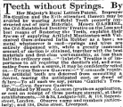 Teeth without Springs , By -L Her Majesty ' s Royal Letters Patent . Improper Mastication and the Evils attendant thereon maybe . avoided bv wearing Artificial Teeth properly constructed and of pure Materials . Messrs . CxA . HJRIEL , the Old-Established Dentists' Treatise on the Loss and best means of Restoring-tlic Teeth , explains their SiysJem of supplying Artificial . Masticatorswith Vulcanised Gum-coloured India Rubber as a base 5 no : metal whatsoever is used—springs and wires are entirely dispensed with , while a greatly increased amount of suction is obtained , together with the best materials and first-class workmanship , at less than half the ordinary cost .-- " Grabriel ' s Treatise is of importance to all requiring the . dentist ' s nid , and emunatin / r from such a . source , it may be confidently relied on . —Unitkd Service Gazette : —" Thousands requiring artificial teeth are deterred from consulting a rieiitist . fearing . the anticipated cost , or dread of fa'lure—To all such we say , peruse ' Gabriel ' s Treatise . ' *'—Civm Service Gazette . Published by Messrs . Gabriel ( gratis on application , or sent on receipt of three postage stamps ) , at their establishments , —33 & 34 , Ludgate-hill , & HO . lteffcntstreet , London . Observe name and numbers particularl y ) : and 134 . Duke street . Liverpool .