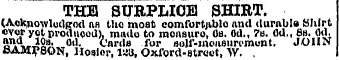 THE SURPLICE SHIRT . ( Acknowlcdpod afl tho most comi ' ortjvblo and durable Shirt over yjt produced ) , made to raoasuro , Ob . Od ., 7 b . Od ., 8 b . fld . gnd 10 b . od . Oardfl for Ho ) l-ino » suri > munt , JOHN SAMPSON , Hosier , 1 « 3 , O ^ ford-Btroet , W . ,