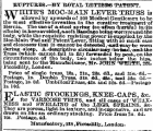 RUPTUR 1 S . —BY ROYAL "EET 01 EIB 6 'PATENT . W HITE'S MOC-MA 1 N LEVER TJKUSS is allowed by upwards of 200 Medical Gentlemen to ho tho "most effective invention , in the curative treatment of Hernia . The use of a steel spring ( softfton hurtful Uvits effects ) i & horo avoided , a , soffc Bandage beiag . w . orirrouHdtho body , while tho requisite resisting power issuppliodby . tho Moc-Main -Pad ann'Patent'Lover , fitting with so much ease arid closeness 1 that it -cannot'b © detected , -andmay be worn during sleep . A . descriptive circuUrmay .-ho * Mul , anditho Truss ( which cannot . fail to Sit ) forwarded by , post , on tho circumforoneo of tho body , two inches below the hips , boing sent to the 'Manufacturer , 'Mr . JOHN "WHITE , S 28 » Piccadilly , London . Price of single truss , 16 s ., 21 s ., 26 s . 63 ., and 31 a -6 d . — Postage , is . Double Truss , 8 ls . « d ., 4 tts ., and fiUs . Gd . — Postage , Is . 8 d . Umbilical Truss , 42 s . and 52 s . Od . —Postngo Is . 10 a . ELASTIC STOOKINGS ,. KnEE-CAPS , & c , vnoo for TARICOSE VEttf ® , and all cases of'WEAKNESS and SWELLING of tho JLEGS , SPRAINS , & o . They aro porous , light in toxturo , and inoxponsivo , and aro drawn on like an ordinary stocking . Price from 7 s , Cd . lUs . Postage , ttd . Manufactory ,- 218 yPicoadilly ,. London .