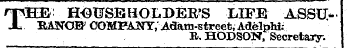 The ; house holders life assii-RANOB COMPANY , Adam-street , Adelphi . - B . HODSON , Secretary . ;