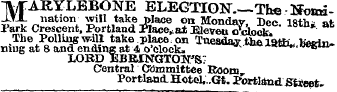 1 UTARYLEBONE ELECTION . —ThsHoim-_ LtX nation will take place on Mondav T ) p <» istiii « v Park Crescent . PortlandMace ^ atBleVe « o ^ lock The Polling will take p ^ ce on Tuesday the l & ffik betrin niug at 8 and ending at 4 o ' clock , •~*~~ " - " * ^»« u « . oegin-LORD EBRINGTO 1 F SV Central Committee Boom Portland . Hotel ,. . Gt . Portland Stieet-