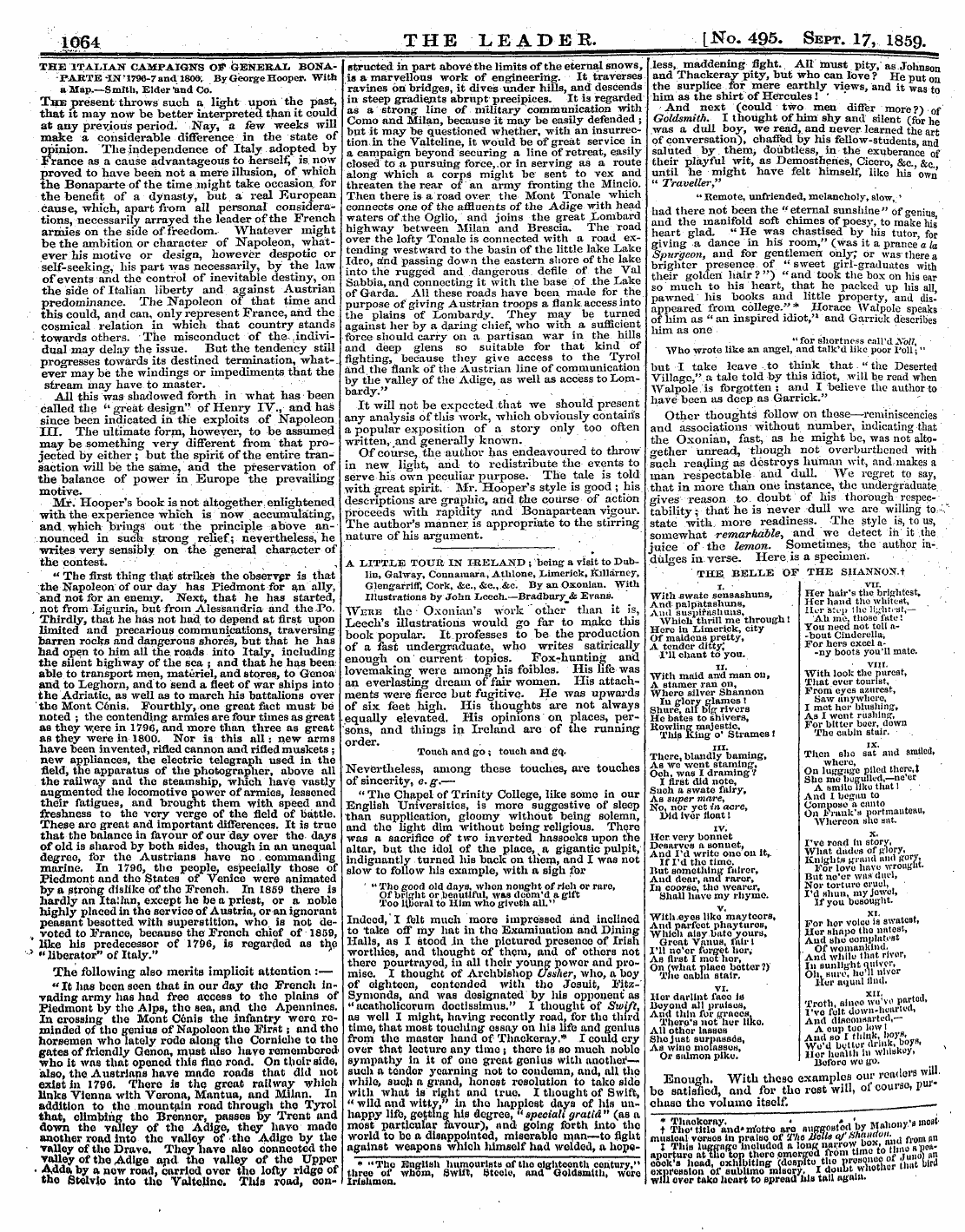 THE ITALIAN CAMPAIGNS OF GENERAL BONAPARTE-IN 1796-7 and 1800 : By Gieorge Hooper . With a Map . —Smith , Elder ' and Co . The present throws such a light upon , the past , that it may now be better interpreted than it could at any previous period . Nay , a few weeks will make a considerable difference in the state of opinion . The independence of Italy adopted by France as a cause advantageous to herself is now proved to have been not a mere illusion , of which the Bonaparte of the time might take occasion , for the benefit of a dynasty , but a real European cause , which , apart from all personal considerations , necessarilv arraved the leader of the French