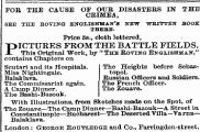 FOR THE CAUSE OF OUR DISASTERS IN THE CRIMEA , SEE THE EOVING- ENGLISHMAN ' S NEW TVBITTEN BOOK THEBEPrice 5 s ., cloth lettered , PICT URES FROM THE BATTLE FIELDS . This Original Work , by " The Roving Englishman , " contains Chapters on Scutari and its Hospitals . The Heights before Sebas-Miss Nightingale . topol . Balaklava . Russian OfHcers and Soldiers . The Commissariat again . The French Officer . A Camp Dinner . The Zouave . The Bashi-Bazouk . With Illustrations , from Sketches made on the Spot , of The Zouave—The Camp Dinner—Bashi-Bazouk—A Street in Constantinople—Bucharest—The Deserted Villa — Va ma—Balaklava . London : George Routledge and Co ., Farringdon-street .