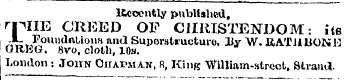 B ^ soently published , rpiIE CREED OF CHRISTENDOM : its / i » t- £ oumlftUoufi . aiia Superstructure , liy W . RATliBON'E OREG . 8 vo , cloth , 10 s . London : Joitn OirArMA . N , R , King William-street , Strain !
