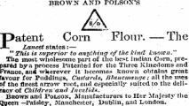 BROWN AND POLSOX'S Ak Patent Corn Flour . — The Lancet states : — " This is superior to anything of the kind known . " The most wholesome part of the best Indian Corn , prepared by a process Patented for the Three Kingdoms and France , and wkerever it becomes known obtains great favour for Puddings , Custards , JiJancmavrje ; all the uses of the finest arrow root , aiid especially suited to the delicacy of Children ami Invalid * . ' .-. _ ¦' >¦ Brown and Polson , Manufacturers toller Majesty the Queen—Paisley . Manchester , Dublin , and London ^