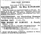 THE NEW NOVELS . Now ready at nil tho Libraries , BACHEL GRAY . By Miss K A . VANAGHone vol ., 10 s . Gd . " IMias Kavnnagh lias surpassed horsolf in this tale . Wo prefer it to her ' Nathalie / ami 'Madeline / clover nnd attractive na they are . Tho story of ' Knchel Grny" is mont pathetic and nfleotliiK . written with Judgment ami ( aslc , 1 'aultlesH , and mnture "—Olmonwr . LILLIESIEAF j the Concluding Passages in the Life of Mrs . M A 1 IG A 1 UCT MAITIjAND . » vols . LAURA GAY . 2 vote ., 21 s . THE HOUSE OP ELJJIORE . A JParnily History . 3 vole . , " This BtorywIU bo rend with nniliigfting Interest . Tha oliaractors nro powerfully drawn . "—Literary d ' ttzvtlc . " A enlendld production . " -. /» An Unit . " A Btory told with a groat deal of power . "—ICvmniiwr . 1 Iroust " nnd B 1 . ACKRTT , Publishers , HucoesBora to Henry 2 Colburn , 13 , Groat MarlborouKh-streot .