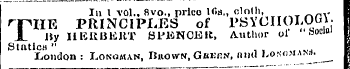 In I vol .. 8 vo ., price H "> fl ., cloth , , rpiIE PRINCIPLES of PSYCIIOLOOJi _ ity IIEKBKKT Sl'liNCEIt , Author ol t" > Ufll StaticH " , , IV . Ijondon : T . ONaM , vN , Dnoww , Gukf . s , nnd l' » s (! "' ^