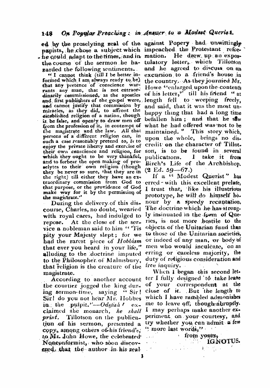 or indeed of any man , or body of men who would inculcate , on an erring or qareless 1 majority , the duty of religious consideration and free inquiry * . s When I began tJfiis second lfeN ter I fully designed to take leatc of your correspondent at the close of k . But the length to which I have rambled admonishes