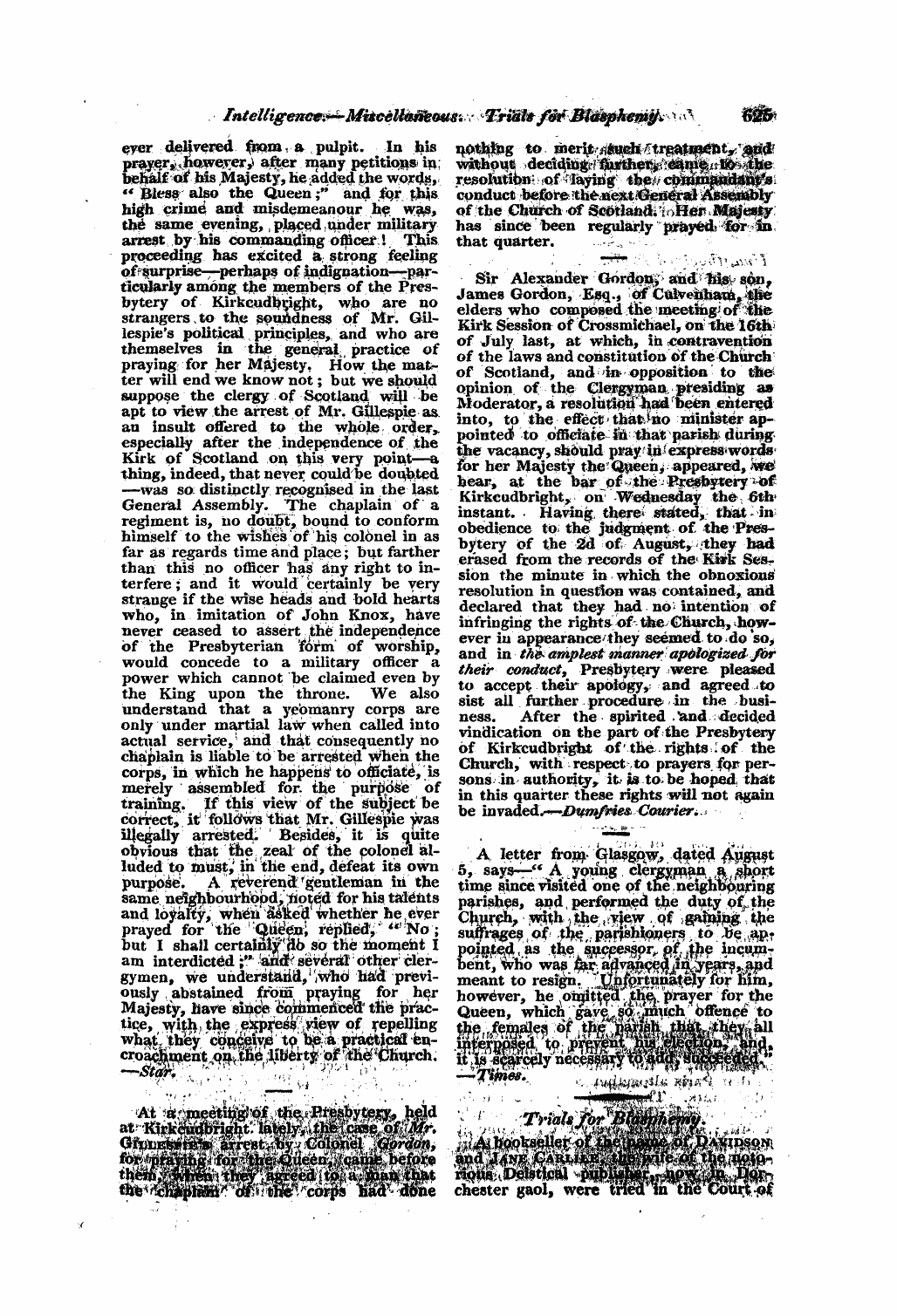 nothing to meri ^ t /^ uch tr ^ tm ^ t , ^ without , i ^ de ^^ lt ^^^ l ^^ t ^^ r ^ f ^^^ tji ^^ l ^ resolution of laying the coirimaHdaut ^ conduct before the ne ^ t Oerieral Assejably of the Church of Scotland . Her Majesty has sinde ' been regularly pt ^^^ r ^ m that quarter . ^^