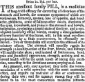 Price Is . \\ i . per box . THIS excellent famil y PILL , is a medicine of long-tried efficacy for correcting all disorders of the stomach and uotvels , the common symptoms of which are costiveness , fl : ituency , ; spasms , loss of appetite , sick headache , giddiness , sense of fullness after meals , dizziness cf the eyes , drowsiness , and pains in the stomach and bowels , indigestion , producing a torpid state of the liver , and aeonsequent inactivity of this ' bowels , causing ; a disorganisation dfeveryiiinction oftlre . fi - ame , will , iu this most excellent preparation , by a little perseverance , be effectually removed . - Two or three doses will convince the afflicted of its salutary effects . The stomach will speedily regain its strenglh ; a healthy action of the liver , bowels , and kidneys will rapidly talce place ; and instead of listlessness , heat , pain and jaundiced appearance , strength , activity , and renewed health will be the quick rcsnlt of taking this medicine , according to the directions accompanying each box . As a pleasant , safe , easy aperient , they unite the recommendation of a mild operation with the most successful effect , and require no restraint of diet or confinement during their use ; and for eldebly people they will be found to he the most comfortable medicine hitherto