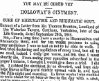 YOU MAYBE CUBED YET nOLLOWATfToiXTMEKT . CUBE OF IIIIEUMATISsTaxd RHEUMATIC GOUT . Extract of a Letter from Mr . Thomas Brnnton , Landlord ot the Waterloo Tavern , Coatham , Yorkshire , late of the Life Guards , dated September 28 th , 1848 . Sib , —For a long time I was a martyr to Rheumatism and Rheumatfe Gout , and for ten weeks previous to uslnu your medicines I was so bad as not to he able to walk I Had toed doctoring and medicines of every kind , but all to no avail-indeed I daily - got worse , and felt that I must snortlydio . Irom seeing your remedies advertised iu the paper i take m , I thought I would give them a trial . I did so . I nibbed the ointment . in as directed , and kept cabbagej Kates to the parts thickly spread with it , and took tne 1 ills night' and nioriunjr . In three weeks I was enabled to walk about for an hour or two ill tllft iky willv n stfek aniin ks could