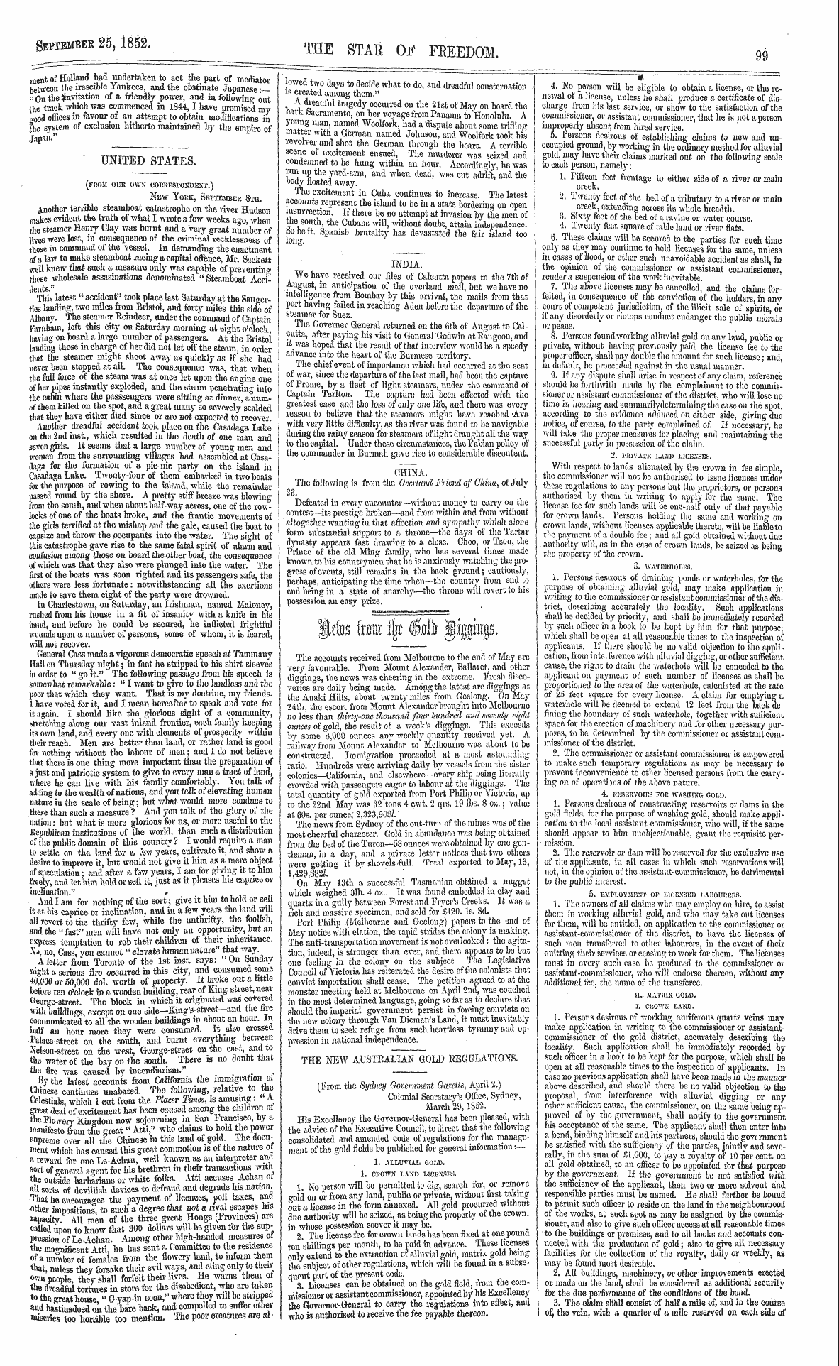 UNITED STATES . ( from our own correspondent . ) New York , September 8 th . Another terrible steamboat catastrophe on the river Hudson makes evident the truth of what I wrote a few weeks ago , when t ie steamer Henry Clay was burnt and a very great number of lives were lost , in consequence of the criminal recklessness of those in command of the vessel . In demanding the enactment of a law to make steamboat racing a capital offence , Mr . Sackett well knew that such a measure only was capable of preventing these wholesale assasinations denominated " Steamboat AccS ilciits . " 5