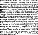 ISDI GESTIOX , BILE , & c—For Sick Headache Habitual Costiveness , Gidd . ness , Lo * B of Appetite , Lewness sf Spirits , with sensation of fulness at the pit of the stomach , pains between the shoulders , and all the distressing : feelings arising from Debility and Indigestion STIRLING'S STOMACH FILLS are the best remedy . They can be taken at any time without danger from wet or cold , requiring no restraint from business or pleasure . They act mildly on the bowels , without pain or griping , speedily remu ting the causes that produce disease , giving Strength to the stomach and promoting a healthy action Of the liver , by which they clear the skin , remove sullowness and pimples , purify the blood , brace the nerves , and invigorate the whole system . A single dose will convince the sufferer of their health-restoring properties . For females they are invaluable . They should be kept in every family , as a remedy that can be resorted to at all times with safety , in cases of sudden illness . Prepared only by J . W . Stirling , S 6 , Ifigh-strect , Whitechapel . Sold in boxes , at Is . lJd ., 2 s . 9 d ., and 4 s . 6 d . each , by most medicine dealers .