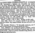 CAUTION . D _TJPTURES PERMANENTLY CURED il WITHOUT A TRUSS ! -Dr . WALTER DE R 00 S , 1 , Ely-place , _Holbern-hill , London , still continues to supply the afflicted with his celebrated cure for Single or Double Ruptures , the efficacy of which is now too well established to need comment It is easy in application , and causes no inconvenience . Will be sent free with full instructions , & c ., on receipt of 6 s . 0 d ., by Post-office orders or otherwise . Dr . De It . has a great number of old trusses left behind by persons cured , as trophies of his immense success , which he will readily give to those who need them , after a trial of this remedy . Hours . —10 till 1 ; and 4 till 8 . Sunday , 10 till 1 only . Mrs . Hill , Deal . — "I am quite cured of my rupture , and now return my sincere tlianks for your attention and care . " Mr . Daniells , Woburn . — "It has quite cured me , aud I feel in duty bound torecommendyounlVIcan , " N : B . —Sufferers are cautioned against youthful , newly started impostors , who for obvious reasons , copy this announcement . Their ( so-called ) remedies being useless , and dangerous imitations only .