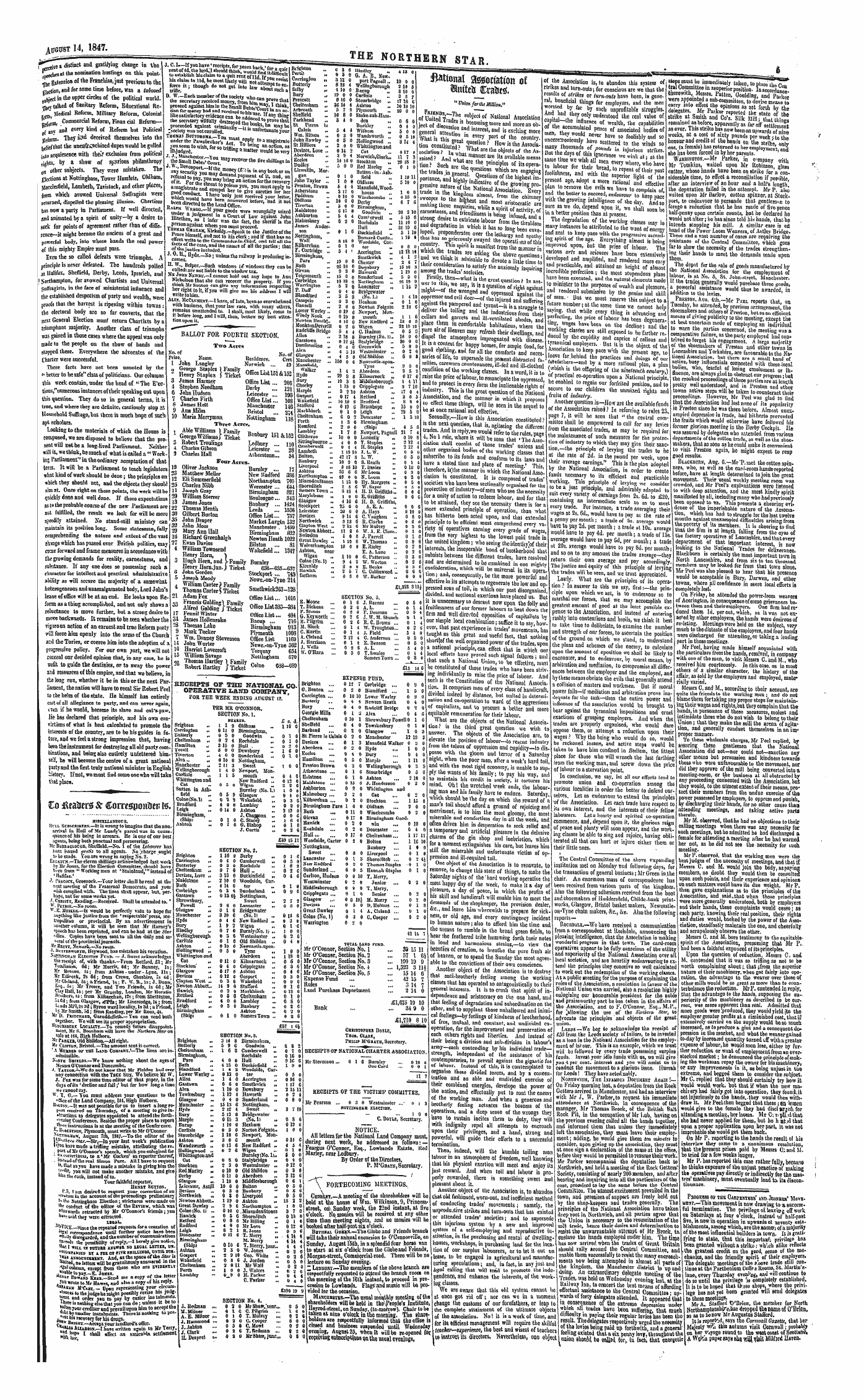 ¦>___¦ EXPENSE FUND Brighton ... 0 12 7 Corbridge ... 0 9 0 ^ G . Benton ... 0 2 0 Biandford ... 15 0 Carrington ... 0 10 10 Lower Warley 0 2 0 Butterly .. 0 4 4 Newton Heattl 0 4 0 Buiy ... 0 4 0 Radcliff Bridge 0 1 9 Georgie Mills 0 13 Alva ... 0 4 6 Cheltenham 0 10 1 Shrewsbury Powell 0 1 G Sheffield ... 0 4 0 Tewskesbury 0 1 9 Barhead ... 0 2 0 Glasgow ... 10 3 St Pierre le Calais 0 2 0 Manchester 12 19 3 Devizes ... 6 13 Mansfield Walker 0 a 0 Aberdeen ... 0 2 0 Hyde ... 10 0 Eccles ... O t 0 Bury ... 0 4 0 Hamilton ... 0 5 0 Marple ... 1 11 0 Preston Brown 0 2 0 Wellingborough 0 3 5 Atherstone ... 0 10 Stourbridge 0 5 0 Helstone ... 0 10 Ashton .,. 210 0 Maiastone ... 0 15 0 J . Henderson 0 2 0 ABhburton ... 0 2 0 Whillington and Mahnsbury ... 9 2 0 Cat ... 0 2 0 KttbaTchan ... 0 2 0 Stockton ... 1 15 0 Birmingham Pare 10 0 Oldham ... 2 0 0 Bath ... 0 11 0 Winchcomba 0 2 0 Girran ... 0 17 Birmingham Good . Hawick ... 0 2 0 win ... 0 10 0 R « ondate ... 0 2 0 Doncaster ... 0 4 0 Hull 0 17 0 Cheltenham ... 117 11 Woodside , Carter 0 2 0 Bolton ... 1 10 10 Nottingham , Banbury ... 1 0 Sweet ... 0 8 0 Liverpool ... 0 19 Lancaster ... 0 13 Shoreilitch ... 0 2 41 New Itadford 0 3 0 Thomas Staples 0 10 Suuderland ... 0 0 5 Hannah Staples 0 I 0 Carlton , Hudson 0 0 10 T . Merry , Westminster 0 2 9 Junior ... 0 2 0 Middlesborough 0 W 0 T . Merry , Cripplegate ... 0 10 Senior ... 0 2 0 Glasgow ... 0 G 10 J M . Merry ... 0 2 0 Devizes ... 0 5 0 II . Holmes ... 0 18 Great Dawley 0 14 A . Cleland ... 0 10 Colne ( No . 1 ) 0 3 0 C . Cooper ... 0 2 0 Warrington 0 2 0 42 15 7 TOTAL LAND FOND . ———_ . Mr O'Connor , Section No . 1 ... 39 15 11 Mr O'Connor , Section No . 2 ... 57 1 GJ Mr O'Connor , Section No . 3 ... 100 19 9 Mr O'Connor , Section No . 4 ... 1 , 323 3 11 * Mr O'Connor , Section No . o ... 15 14 0 " Expense Fund ... ... 42 15 7 Rules ... ... 3 14 7 Land Purchase Department ... 2 14 0 £ 1 , 075 19 10 Bank ... ... 34 9 0 jEl / riO 8 10 Chkistopheh Doile , Thos . Clauk , Philip M'Geath , Secretary .
