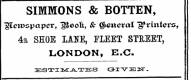 SIMMONS & BOTTEN , ¦ glemssprtpe *" * "gjoolt , & general " ^ rinfers , 4 a SHOE IABE , FLEET STREET , LONDON , E . C . DEJSTIJS ^ T-A . 'X'EIS C 3-X"V 3 EIT - 1