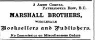 3 Amen Cornels , Paternoster Row , E . C . MARSHALL BROTHERS , WHOLESALE ^ Booksellers anb Iguhlizfyexs . No Commission on Miscellaneous Orders .