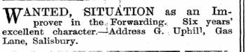 _ . 1— - WANTED prover , SITUATION the , , Forwarding . as , Six an years Im- ' excellent character .- ^ Address G . Uphill , Gas Lane , Salisbury .