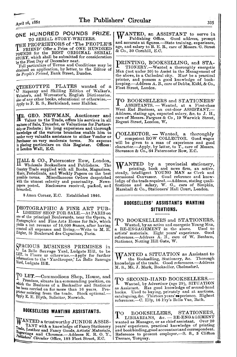 Publishers’ Circular (1880-1890), April 16, 1881, page 335, in the Nineteenth-Century Serials Edition (2008; 2018) ncse.ac.uk/periodicals/pc/issues/tec_16041881/page/35/